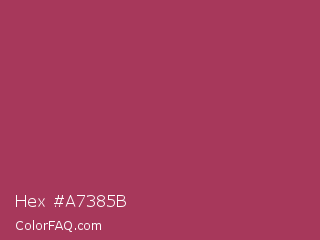 Hex #a7385b Color is a normal rose color and the nearest color is Night Shadz #aa375a. Hex code #a7385b and RGB value is rgb(167,56,91). In RGB color space, this color is composed of 65% red, 22% green, 36% blue, In CMYK color space, this color is composed of 0% cyan, 66% magenta, 46% yellow , 35% black , In HSL color space, this color has a hue angle of 341° , 50% saturation and 44% lightness.