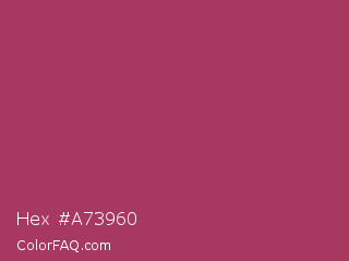 Hex #a73960 Color is a normal rose color and the nearest color is Night Shadz #aa375a. Hex code #a73960 and RGB value is rgb(167,57,96). In RGB color space, this color is composed of 65% red, 22% green, 38% blue, In CMYK color space, this color is composed of 0% cyan, 66% magenta, 43% yellow , 35% black , In HSL color space, this color has a hue angle of 339° , 49% saturation and 44% lightness.