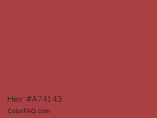 Hex #a74143 Color is a normal red color and the nearest color is Apple Blossom #af4d43. Hex code #a74143 and RGB value is rgb(167,65,67). In RGB color space, this color is composed of 65% red, 25% green, 26% blue, In CMYK color space, this color is composed of 0% cyan, 61% magenta, 60% yellow , 35% black , In HSL color space, this color has a hue angle of 359° , 44% saturation and 45% lightness.