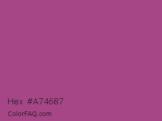Hex #a74687 Color is a normal magenta color and the nearest color is Mystic Maroon #ad4379. Hex code #a74687 and RGB value is rgb(167,70,135). In RGB color space, this color is composed of 65% red, 27% green, 53% blue, In CMYK color space, this color is composed of 0% cyan, 58% magenta, 19% yellow , 35% black , In HSL color space, this color has a hue angle of 320° , 41% saturation and 46% lightness.