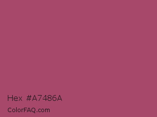 Hex #a7486a Color is a normal rose color and the nearest color is Medium Ruby #aa4069. Hex code #a7486a and RGB value is rgb(167,72,106). In RGB color space, this color is composed of 65% red, 28% green, 42% blue, In CMYK color space, this color is composed of 0% cyan, 57% magenta, 37% yellow , 35% black , In HSL color space, this color has a hue angle of 339° , 40% saturation and 47% lightness.
