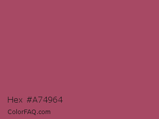 Hex #a74964 Color is a normal rose color and the nearest color is Hippie Pink #ae4560. Hex code #a74964 and RGB value is rgb(167,73,100). In RGB color space, this color is composed of 65% red, 29% green, 39% blue, In CMYK color space, this color is composed of 0% cyan, 56% magenta, 40% yellow , 35% black , In HSL color space, this color has a hue angle of 343° , 39% saturation and 47% lightness.