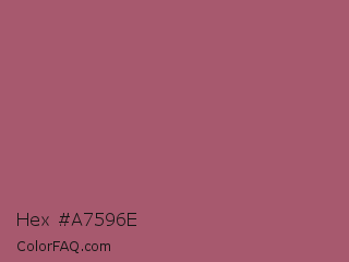 Hex #a7596e Color is a normal rose color and the nearest color is Deep Puce #a95c68. Hex code #a7596e and RGB value is rgb(167,89,110). In RGB color space, this color is composed of 65% red, 35% green, 43% blue, In CMYK color space, this color is composed of 0% cyan, 47% magenta, 34% yellow , 35% black , In HSL color space, this color has a hue angle of 344° , 31% saturation and 50% lightness.