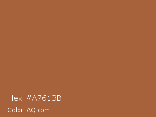 Hex #a7613b Color is a normal orange color and the nearest color is Brown Rust #af593e. Hex code #a7613b and RGB value is rgb(167,97,59). In RGB color space, this color is composed of 65% red, 38% green, 23% blue, In CMYK color space, this color is composed of 0% cyan, 42% magenta, 65% yellow , 35% black , In HSL color space, this color has a hue angle of 21° , 48% saturation and 44% lightness.