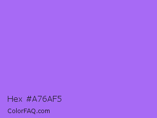 Hex #a76af5 Color is a light violet color and the nearest color is Navy Purple #9457eb. Hex code #a76af5 and RGB value is rgb(167,106,245). In RGB color space, this color is composed of 65% red, 42% green, 96% blue, In CMYK color space, this color is composed of 32% cyan, 57% magenta, 0% yellow , 4% black , In HSL color space, this color has a hue angle of 266° , 87% saturation and 69% lightness.