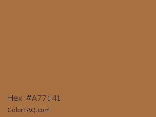 Hex #a77141 Color is a normal orange color and the nearest color is Cape Palliser #a26645. Hex code #a77141 and RGB value is rgb(167,113,65). In RGB color space, this color is composed of 65% red, 44% green, 25% blue, In CMYK color space, this color is composed of 0% cyan, 32% magenta, 61% yellow , 35% black , In HSL color space, this color has a hue angle of 28° , 44% saturation and 45% lightness.