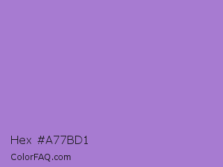 Hex #a77bd1 Color is a light purple color and the nearest color is Rich Lavender #a76bcf. Hex code #a77bd1 and RGB value is rgb(167,123,209). In RGB color space, this color is composed of 65% red, 48% green, 82% blue, In CMYK color space, this color is composed of 20% cyan, 41% magenta, 0% yellow , 18% black , In HSL color space, this color has a hue angle of 271° , 48% saturation and 65% lightness.
