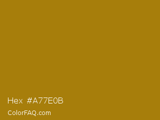 Hex #a77e0b Color is a normal orange color and the nearest color is Buttered Rum #a1750d. Hex code #a77e0b and RGB value is rgb(167,126,11). In RGB color space, this color is composed of 65% red, 49% green, 4% blue, In CMYK color space, this color is composed of 0% cyan, 25% magenta, 93% yellow , 35% black , In HSL color space, this color has a hue angle of 44° , 88% saturation and 35% lightness.