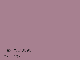 Hex #a78090 Color is a normal rose color and the nearest color is English Lavender #b48395. Hex code #a78090 and RGB value is rgb(167,128,144). In RGB color space, this color is composed of 65% red, 50% green, 56% blue, In CMYK color space, this color is composed of 0% cyan, 23% magenta, 14% yellow , 35% black , In HSL color space, this color has a hue angle of 335° , 18% saturation and 58% lightness.