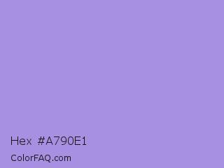 Hex #a790e1 Color is a light indigo color and the nearest color is Dull Lavender #a899e6. Hex code #a790e1 and RGB value is rgb(167,144,225). In RGB color space, this color is composed of 65% red, 56% green, 88% blue, In CMYK color space, this color is composed of 26% cyan, 36% magenta, 0% yellow , 12% black , In HSL color space, this color has a hue angle of 257° , 57% saturation and 72% lightness.