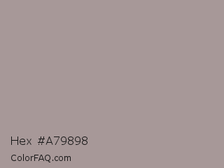 Hex #a79898 Color is a light red color and the nearest color is Dusty Gray #a8989b. Hex code #a79898 and RGB value is rgb(167,152,152). In RGB color space, this color is composed of 65% red, 60% green, 60% blue, In CMYK color space, this color is composed of 0% cyan, 9% magenta, 9% yellow , 35% black , In HSL color space, this color has a hue angle of 0° , 8% saturation and 63% lightness.