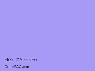 Hex #a799f6 Color is a light indigo color and the nearest color is Dull Lavender #a899e6. Hex code #a799f6 and RGB value is rgb(167,153,246). In RGB color space, this color is composed of 65% red, 60% green, 96% blue, In CMYK color space, this color is composed of 32% cyan, 38% magenta, 0% yellow , 4% black , In HSL color space, this color has a hue angle of 249° , 84% saturation and 78% lightness.