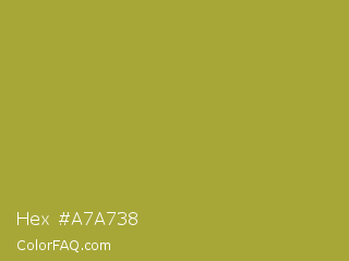 Hex #a7a738 Color is a normal yellow color and the nearest color is Brass #b5a642. Hex code #a7a738 and RGB value is rgb(167,167,56). In RGB color space, this color is composed of 65% red, 65% green, 22% blue, In CMYK color space, this color is composed of 0% cyan, 0% magenta, 66% yellow , 35% black , In HSL color space, this color has a hue angle of 60° , 50% saturation and 44% lightness.