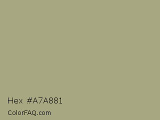 Hex #a7a881 Color is a normal yellow color and the nearest color is Hillary #aca586. Hex code #a7a881 and RGB value is rgb(167,168,129). In RGB color space, this color is composed of 65% red, 66% green, 51% blue, In CMYK color space, this color is composed of 1% cyan, 0% magenta, 23% yellow , 34% black , In HSL color space, this color has a hue angle of 62° , 18% saturation and 58% lightness.