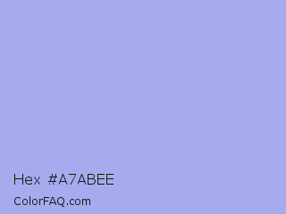 Hex #a7abee Color is a light blue color and the nearest color is Maximum Blue Purple #acace6. Hex code #a7abee and RGB value is rgb(167,171,238). In RGB color space, this color is composed of 65% red, 67% green, 93% blue, In CMYK color space, this color is composed of 30% cyan, 28% magenta, 0% yellow , 7% black , In HSL color space, this color has a hue angle of 237° , 68% saturation and 79% lightness.