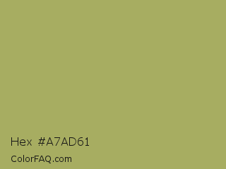 Hex #a7ad61 Color is a normal yellow color and the nearest color is Green Smoke #a4af6e. Hex code #a7ad61 and RGB value is rgb(167,173,97). In RGB color space, this color is composed of 65% red, 68% green, 38% blue, In CMYK color space, this color is composed of 3% cyan, 0% magenta, 44% yellow , 32% black , In HSL color space, this color has a hue angle of 65° , 32% saturation and 53% lightness.