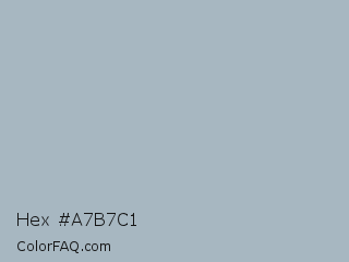 Hex #a7b7c1 Color is a light blue color and the nearest color is Cadet Blue #a9b2c3. Hex code #a7b7c1 and RGB value is rgb(167,183,193). In RGB color space, this color is composed of 65% red, 72% green, 76% blue, In CMYK color space, this color is composed of 13% cyan, 5% magenta, 0% yellow , 24% black , In HSL color space, this color has a hue angle of 203° , 17% saturation and 71% lightness.