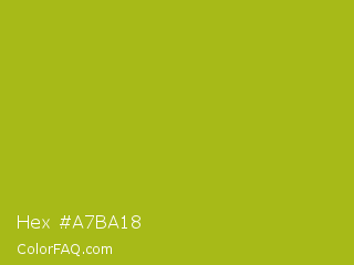 Hex #a7ba18 Color is a normal yellow color and the nearest color is Acid Green #b0bf1a. Hex code #a7ba18 and RGB value is rgb(167,186,24). In RGB color space, this color is composed of 65% red, 73% green, 9% blue, In CMYK color space, this color is composed of 10% cyan, 0% magenta, 87% yellow , 27% black , In HSL color space, this color has a hue angle of 67° , 77% saturation and 41% lightness.