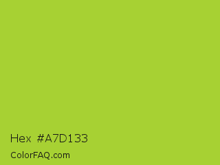 Hex #a7d133 Color is a normal lime color and the nearest color is Android Green #a4c639. Hex code #a7d133 and RGB value is rgb(167,209,51). In RGB color space, this color is composed of 65% red, 82% green, 20% blue, In CMYK color space, this color is composed of 20% cyan, 0% magenta, 76% yellow , 18% black , In HSL color space, this color has a hue angle of 76° , 63% saturation and 51% lightness.