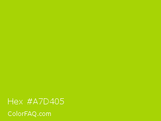 Hex #a7d405 Color is a normal lime color and the nearest color is Vivid Lime Green #a6d608. Hex code #a7d405 and RGB value is rgb(167,212,5). In RGB color space, this color is composed of 65% red, 83% green, 2% blue, In CMYK color space, this color is composed of 21% cyan, 0% magenta, 98% yellow , 17% black , In HSL color space, this color has a hue angle of 73° , 95% saturation and 43% lightness.