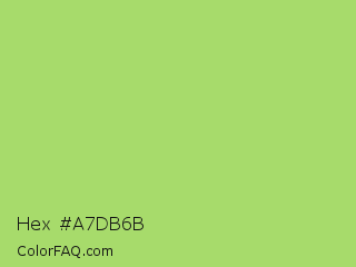 Hex #a7db6b Color is a light green color and the nearest color is Inchworm #b2ec5d. Hex code #a7db6b and RGB value is rgb(167,219,107). In RGB color space, this color is composed of 65% red, 86% green, 42% blue, In CMYK color space, this color is composed of 24% cyan, 0% magenta, 51% yellow , 14% black , In HSL color space, this color has a hue angle of 88° , 61% saturation and 64% lightness.