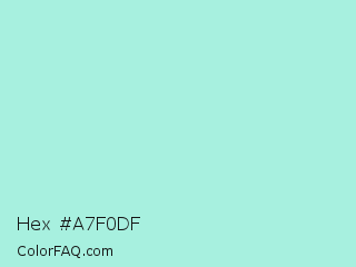 Hex #a7f0df Color is a light cyan color and the nearest color is Water Leaf #a1e9de. Hex code #a7f0df and RGB value is rgb(167,240,223). In RGB color space, this color is composed of 65% red, 94% green, 87% blue, In CMYK color space, this color is composed of 30% cyan, 0% magenta, 7% yellow , 6% black , In HSL color space, this color has a hue angle of 166° , 71% saturation and 80% lightness.