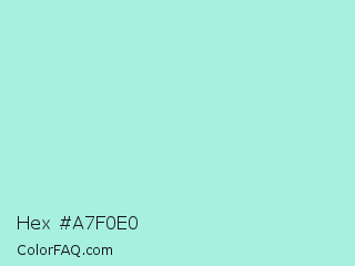 Hex #a7f0e0 Color is a light cyan color and the nearest color is Water Leaf #a1e9de. Hex code #a7f0e0 and RGB value is rgb(167,240,224). In RGB color space, this color is composed of 65% red, 94% green, 88% blue, In CMYK color space, this color is composed of 30% cyan, 0% magenta, 7% yellow , 6% black , In HSL color space, this color has a hue angle of 167° , 71% saturation and 80% lightness.