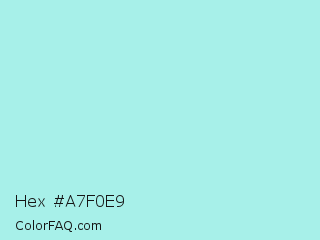 Hex #a7f0e9 Color is a light cyan color and the nearest color is Pale Turquoise #afeeee. Hex code #a7f0e9 and RGB value is rgb(167,240,233). In RGB color space, this color is composed of 65% red, 94% green, 91% blue, In CMYK color space, this color is composed of 30% cyan, 0% magenta, 3% yellow , 6% black , In HSL color space, this color has a hue angle of 174° , 71% saturation and 80% lightness.