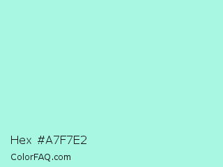 Hex #a7f7e2 Color is a very light cyan color and the nearest color is Ice Cold #b1f4e7. Hex code #a7f7e2 and RGB value is rgb(167,247,226). In RGB color space, this color is composed of 65% red, 97% green, 89% blue, In CMYK color space, this color is composed of 32% cyan, 0% magenta, 9% yellow , 3% black , In HSL color space, this color has a hue angle of 164° , 83% saturation and 81% lightness.