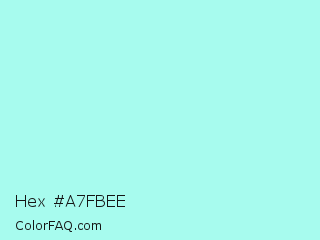 Hex #a7fbee Color is a very light cyan color and the nearest color is Waterspout #a4f4f9. Hex code #a7fbee and RGB value is rgb(167,251,238). In RGB color space, this color is composed of 65% red, 98% green, 93% blue, In CMYK color space, this color is composed of 33% cyan, 0% magenta, 5% yellow , 2% black , In HSL color space, this color has a hue angle of 171° , 91% saturation and 82% lightness.