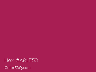 Hex #a81e53 Color is a normal rose color and the nearest color is Amaranth Purple #ab274f. Hex code #a81e53 and RGB value is rgb(168,30,83). In RGB color space, this color is composed of 66% red, 12% green, 33% blue, In CMYK color space, this color is composed of 0% cyan, 82% magenta, 51% yellow , 34% black , In HSL color space, this color has a hue angle of 337° , 70% saturation and 39% lightness.