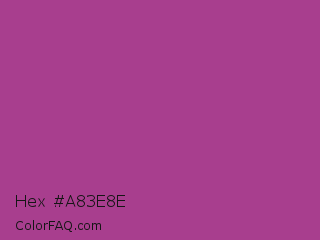 Hex #a83e8e Color is a normal magenta color and the nearest color is Fandango #b53389. Hex code #a83e8e and RGB value is rgb(168,62,142). In RGB color space, this color is composed of 66% red, 24% green, 56% blue, In CMYK color space, this color is composed of 0% cyan, 63% magenta, 15% yellow , 34% black , In HSL color space, this color has a hue angle of 315° , 46% saturation and 45% lightness.