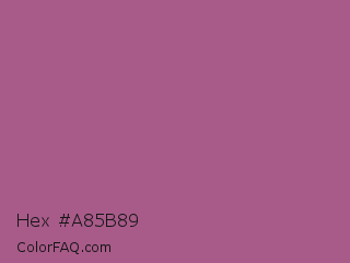 Hex #a85b89 Color is a normal magenta color and the nearest color is Tapestry #b05e81. Hex code #a85b89 and RGB value is rgb(168,91,137). In RGB color space, this color is composed of 66% red, 36% green, 54% blue, In CMYK color space, this color is composed of 0% cyan, 46% magenta, 18% yellow , 34% black , In HSL color space, this color has a hue angle of 324° , 31% saturation and 51% lightness.