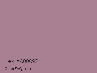 Hex #a88092 Color is a normal rose color and the nearest color is English Lavender #b48395. Hex code #a88092 and RGB value is rgb(168,128,146). In RGB color space, this color is composed of 66% red, 50% green, 57% blue, In CMYK color space, this color is composed of 0% cyan, 24% magenta, 13% yellow , 34% black , In HSL color space, this color has a hue angle of 333° , 19% saturation and 58% lightness.