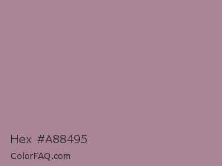 Hex #a88495 Color is a normal rose color and the nearest color is Bouquet #ae809e. Hex code #a88495 and RGB value is rgb(168,132,149). In RGB color space, this color is composed of 66% red, 52% green, 58% blue, In CMYK color space, this color is composed of 0% cyan, 21% magenta, 11% yellow , 34% black , In HSL color space, this color has a hue angle of 332° , 17% saturation and 59% lightness.