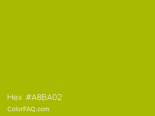 Hex #a8ba02 Color is a normal yellow color and the nearest color is Citrus #a1c50a. Hex code #a8ba02 and RGB value is rgb(168,186,2). In RGB color space, this color is composed of 66% red, 73% green, 1% blue, In CMYK color space, this color is composed of 10% cyan, 0% magenta, 99% yellow , 27% black , In HSL color space, this color has a hue angle of 66° , 98% saturation and 37% lightness.