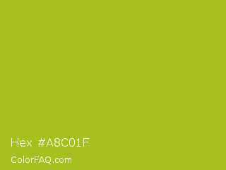 Hex #a8c01f Color is a normal yellow color and the nearest color is Acid Green #b0bf1a. Hex code #a8c01f and RGB value is rgb(168,192,31). In RGB color space, this color is composed of 66% red, 75% green, 12% blue, In CMYK color space, this color is composed of 13% cyan, 0% magenta, 84% yellow , 25% black , In HSL color space, this color has a hue angle of 69° , 72% saturation and 44% lightness.
