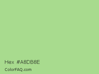 Hex #a8db8e Color is a light green color and the nearest color is Feijoa #9fdd8c. Hex code #a8db8e and RGB value is rgb(168,219,142). In RGB color space, this color is composed of 66% red, 86% green, 56% blue, In CMYK color space, this color is composed of 23% cyan, 0% magenta, 35% yellow , 14% black , In HSL color space, this color has a hue angle of 100° , 52% saturation and 71% lightness.