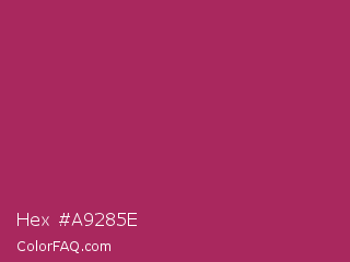 Hex #a9285e Color is a normal rose color and the nearest color is Rich Maroon #b03060. Hex code #a9285e and RGB value is rgb(169,40,94). In RGB color space, this color is composed of 66% red, 16% green, 37% blue, In CMYK color space, this color is composed of 0% cyan, 76% magenta, 44% yellow , 34% black , In HSL color space, this color has a hue angle of 335° , 62% saturation and 41% lightness.