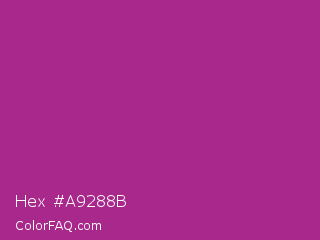 Hex #a9288b Color is a normal magenta color and the nearest color is Fandango #b53389. Hex code #a9288b and RGB value is rgb(169,40,139). In RGB color space, this color is composed of 66% red, 16% green, 55% blue, In CMYK color space, this color is composed of 0% cyan, 76% magenta, 18% yellow , 34% black , In HSL color space, this color has a hue angle of 314° , 62% saturation and 41% lightness.