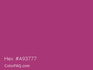 Hex #a93777 Color is a normal magenta color and the nearest color is Maximum Red Purple #a63a79. Hex code #a93777 and RGB value is rgb(169,55,119). In RGB color space, this color is composed of 66% red, 22% green, 47% blue, In CMYK color space, this color is composed of 0% cyan, 67% magenta, 30% yellow , 34% black , In HSL color space, this color has a hue angle of 326° , 51% saturation and 44% lightness.