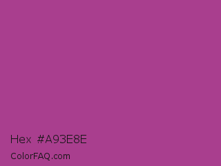 Hex #a93e8e Color is a normal magenta color and the nearest color is Fandango #b53389. Hex code #a93e8e and RGB value is rgb(169,62,142). In RGB color space, this color is composed of 66% red, 24% green, 56% blue, In CMYK color space, this color is composed of 0% cyan, 63% magenta, 16% yellow , 34% black , In HSL color space, this color has a hue angle of 315° , 46% saturation and 45% lightness.