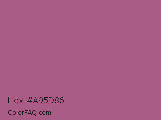 Hex #a95d86 Color is a normal rose color and the nearest color is Tapestry #b05e81. Hex code #a95d86 and RGB value is rgb(169,93,134). In RGB color space, this color is composed of 66% red, 36% green, 53% blue, In CMYK color space, this color is composed of 0% cyan, 45% magenta, 21% yellow , 34% black , In HSL color space, this color has a hue angle of 328° , 31% saturation and 51% lightness.