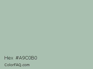 Hex #a9c0b0 Color is a light green color and the nearest color is Cambridge Blue #a3c1ad. Hex code #a9c0b0 and RGB value is rgb(169,192,176). In RGB color space, this color is composed of 66% red, 75% green, 69% blue, In CMYK color space, this color is composed of 12% cyan, 0% magenta, 8% yellow , 25% black , In HSL color space, this color has a hue angle of 138° , 15% saturation and 71% lightness.