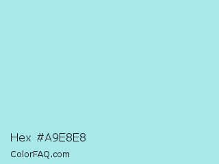 Hex #a9e8e8 Color is a light cyan color and the nearest color is Blizzard Blue #ace5ee. Hex code #a9e8e8 and RGB value is rgb(169,232,232). In RGB color space, this color is composed of 66% red, 91% green, 91% blue, In CMYK color space, this color is composed of 27% cyan, 0% magenta, 0% yellow , 9% black , In HSL color space, this color has a hue angle of 180° , 58% saturation and 79% lightness.