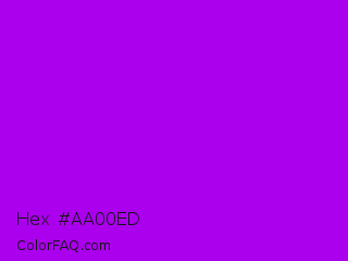 Hex #aa00ed Color is a normal purple color and the nearest color is Vivid Mulberry #b80ce3. Hex code #aa00ed and RGB value is rgb(170,0,237). In RGB color space, this color is composed of 67% red, 0% green, 93% blue, In CMYK color space, this color is composed of 28% cyan, 100% magenta, 0% yellow , 7% black , In HSL color space, this color has a hue angle of 283° , 100% saturation and 46% lightness.
