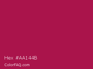 Hex #aa144b Color is a normal rose color and the nearest color is French Wine #ac1e44. Hex code #aa144b and RGB value is rgb(170,20,75). In RGB color space, this color is composed of 67% red, 8% green, 29% blue, In CMYK color space, this color is composed of 0% cyan, 88% magenta, 56% yellow , 33% black , In HSL color space, this color has a hue angle of 338° , 79% saturation and 37% lightness.