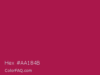 Hex #aa184b Color is a normal rose color and the nearest color is French Wine #ac1e44. Hex code #aa184b and RGB value is rgb(170,24,75). In RGB color space, this color is composed of 67% red, 9% green, 29% blue, In CMYK color space, this color is composed of 0% cyan, 86% magenta, 56% yellow , 33% black , In HSL color space, this color has a hue angle of 339° , 75% saturation and 38% lightness.