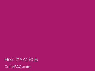 Hex #aa186b Color is a normal magenta color and the nearest color is Jazzberry Jam #a50b5e. Hex code #aa186b and RGB value is rgb(170,24,107). In RGB color space, this color is composed of 67% red, 9% green, 42% blue, In CMYK color space, this color is composed of 0% cyan, 86% magenta, 37% yellow , 33% black , In HSL color space, this color has a hue angle of 326° , 75% saturation and 38% lightness.