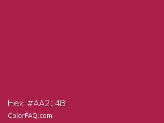 Hex #aa214b Color is a normal rose color and the nearest color is Amaranth Purple #ab274f. Hex code #aa214b and RGB value is rgb(170,33,75). In RGB color space, this color is composed of 67% red, 13% green, 29% blue, In CMYK color space, this color is composed of 0% cyan, 81% magenta, 56% yellow , 33% black , In HSL color space, this color has a hue angle of 342° , 67% saturation and 40% lightness.